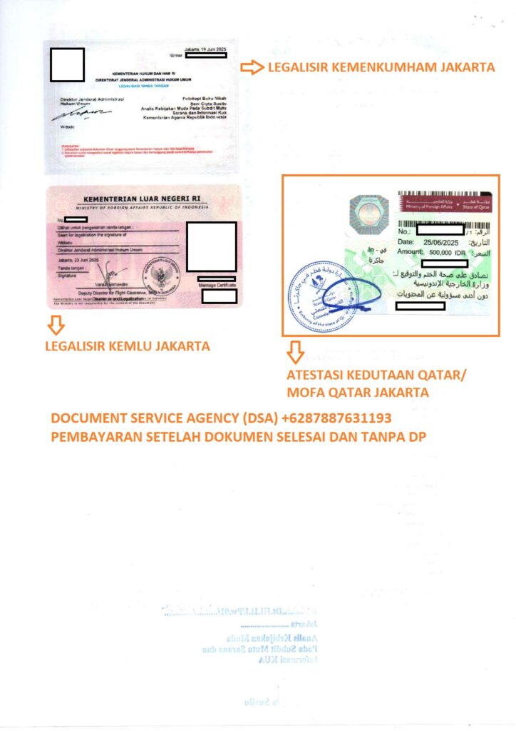 Buku nikah Indonesia harus dilegalisasi dan diatestasi agar diakui secara hukum oleh pemerintah Qatar. Proses ini memastikan dokumen kamu sah secara internasional dan diterima oleh instansi Qatar seperti Kementerian Dalam Negeri Qatar, Imigrasi, atau Kedutaan.